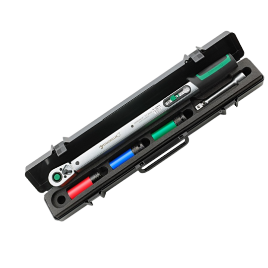 - 1x standard MANOSKOP No721QR/20 Quick, 40-200N.m, 30 - 150ft.lb, with permanently installed Quick Release ratchet, reversible, 1/2 inch D-drive